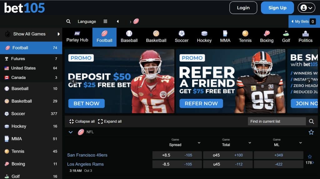- Bet105 – A streamlined site focused on straightforward odds and speedy bets.